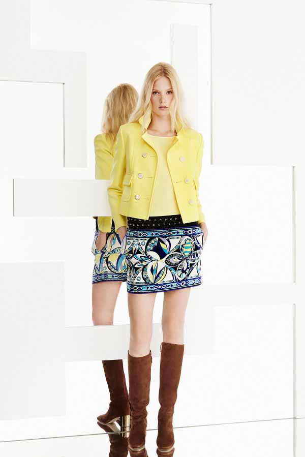 Цветовая палитра коллекции Resort 2015 от Emilio Pucci, как глоток свежего воздуха, включает в себя не только черно-белые монохромные тона, но и оттенки простой пастели, расцветку военно-морского флота, бледно-желтые, коричневые и бледно-розовые цвета.