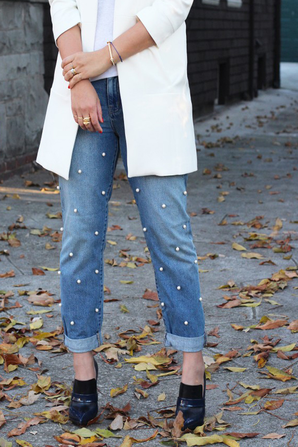 Надоели обычные джинсы, а для рваных на улице уже прохладно? Есть решение и на этот случай. Просто нашейте на свои джинсы в произвольном порядке красивые бусины, вы удивитесь результату!